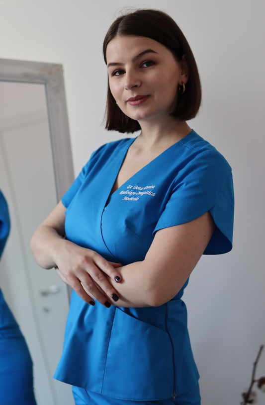 Pantaloni medicali damă eleganți cu fermoar și talie înaltă